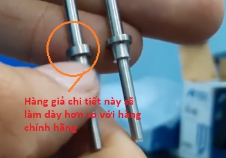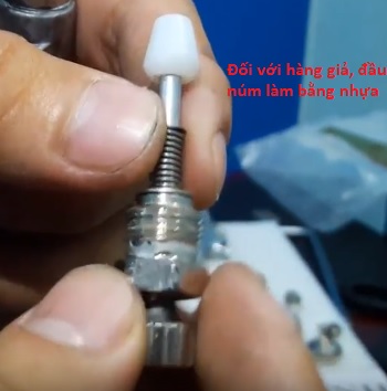 Với hàng thật, tất cả đều được làm bằng kim loại và vừa khít 100% với nhau. Không cần thêm bất cứ chi tiết nhựa nào. Nhưng hàng giả thì đầu của nó bát buộc phải làm bằng nhựa mới có thể khít.
